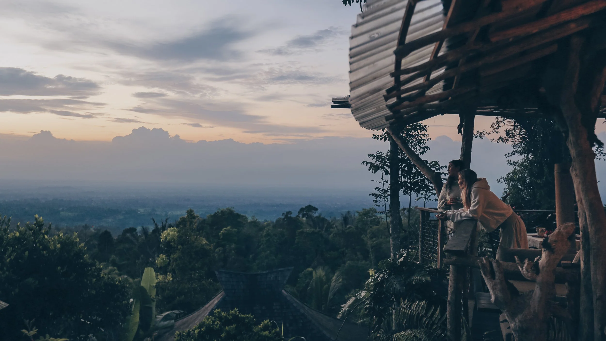 Sessions take place on a covered yoga platform overlooking jungle and valley, offering a calm, protected space to reconnect with body, breath, and attention.